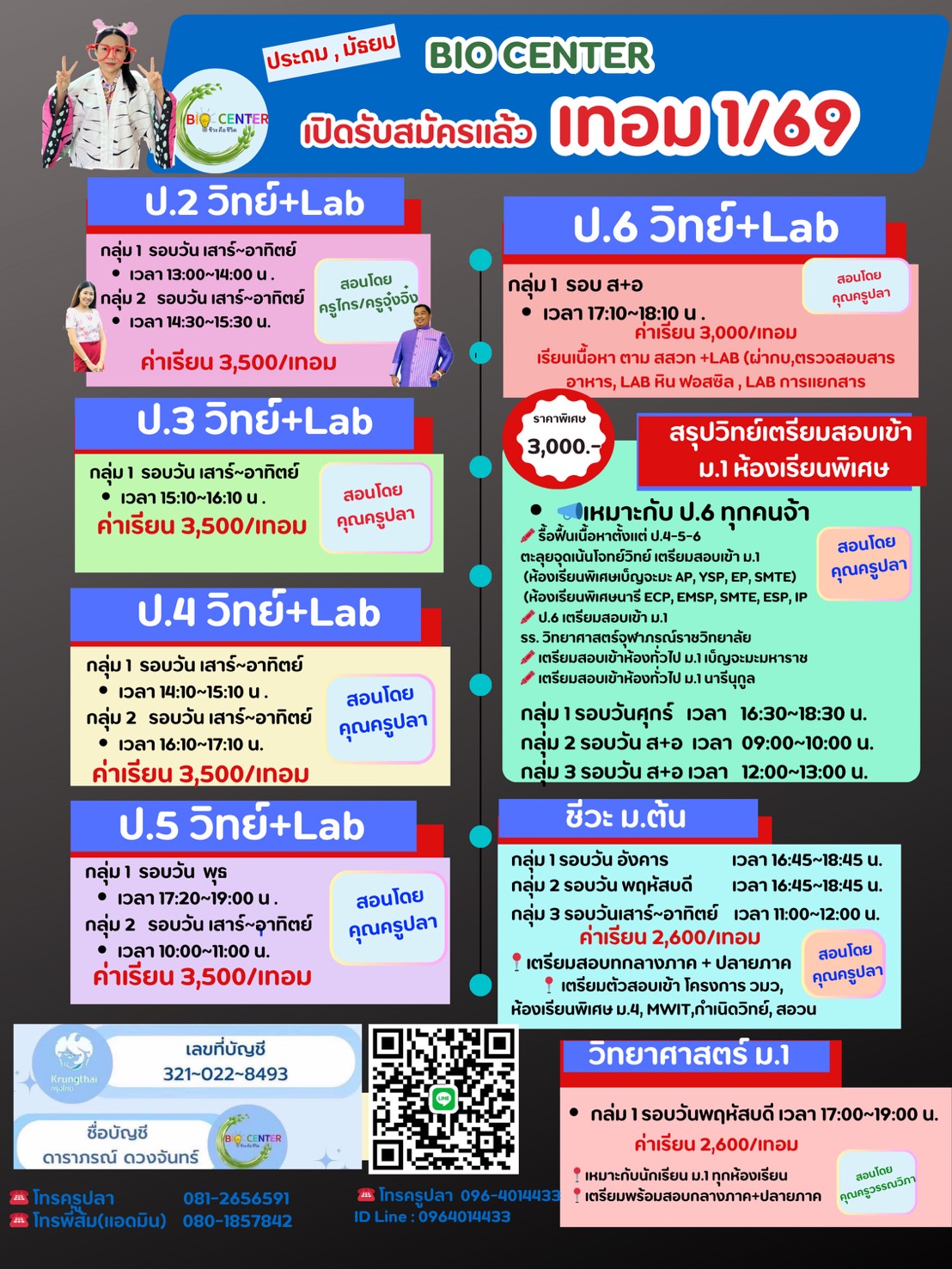 คอร์สเรียนที่เปิดสอนของสถาบันกวดวิชา BIO CENTER